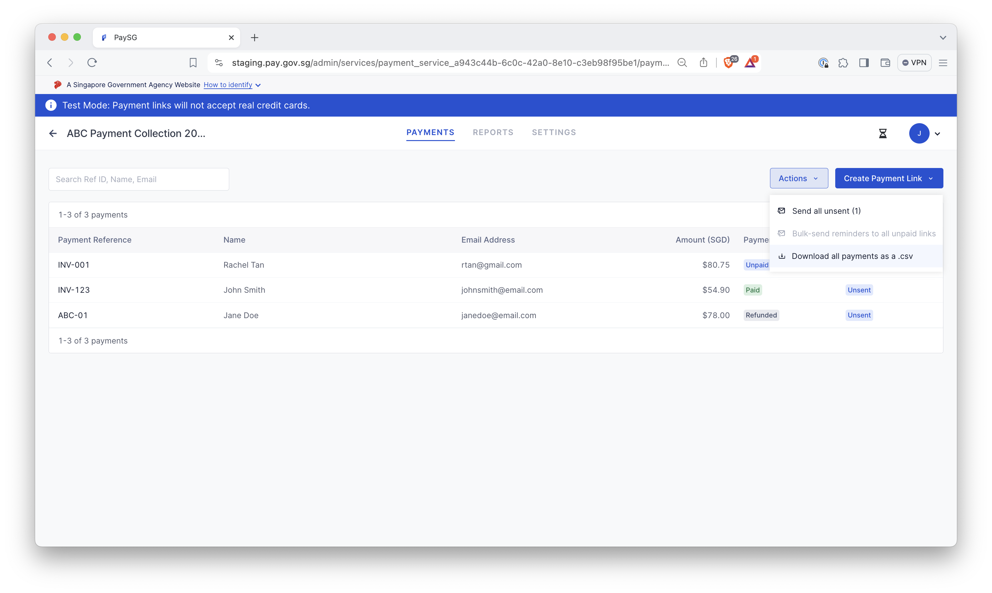 * Link sent on: Date when payment link was sent via email on PaySG dashboard.