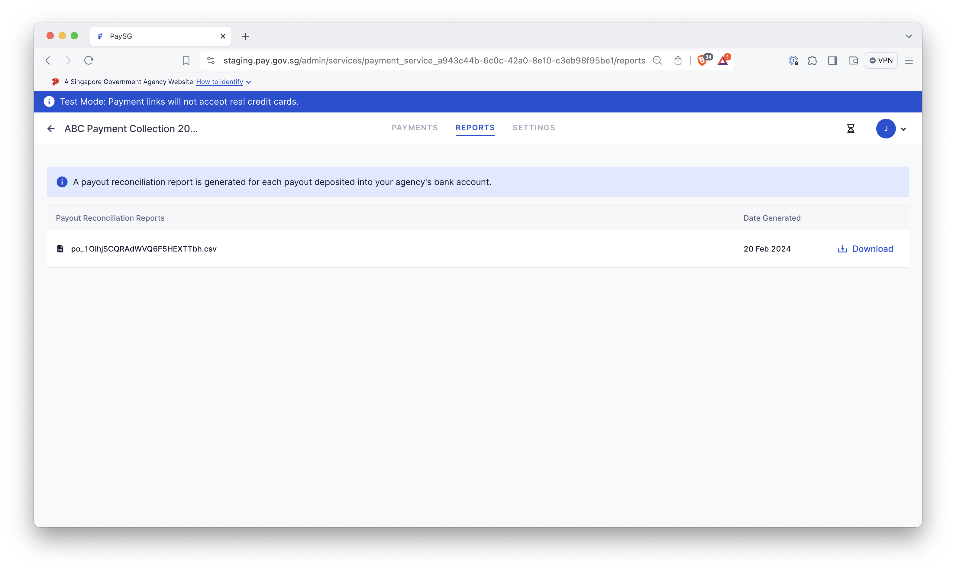 PaySG provides our users with payment reports, generated on demand, and payout reports, generated for each payout deposited into your receiving bank account. **The report is not customisable.**